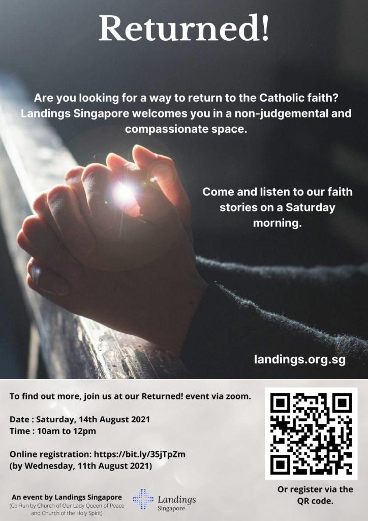 So if you do have someone in mind, that you know, needs a way to return to the Catholic Church. Do give the Landings program some consideration and pass it on to them. Find out more at this Returned! event coming soon.
